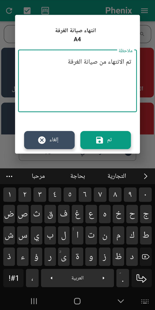هو أحد تطبيقات أنظمة فينكس المتوافقة مع بيئة أندوريد تطبيق الفنادق phenix housekeeping