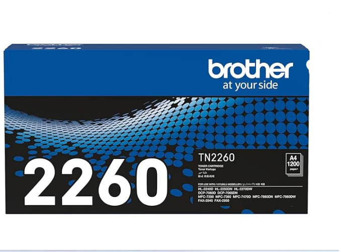 🖨️ خرطوشة حبر Brother الأصلية TN-2260 – أسود – تطبع 1200 صفحة – متوافقة مع HL-2240D وDCP-7060D وMFC-7860DW